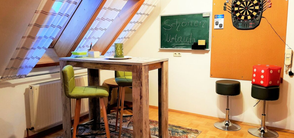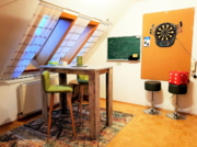 Buchen Sie das ganze Haus, so haben Sie außerdem im oberen Wohnzimmer ein Darts-Spiel und auch eine große Balkonterrasse.
