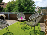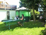 Vor dem Haus befinden sich zwei Parkplätze und hinter dem Haus ein schöner Garten mit Sitzecke.